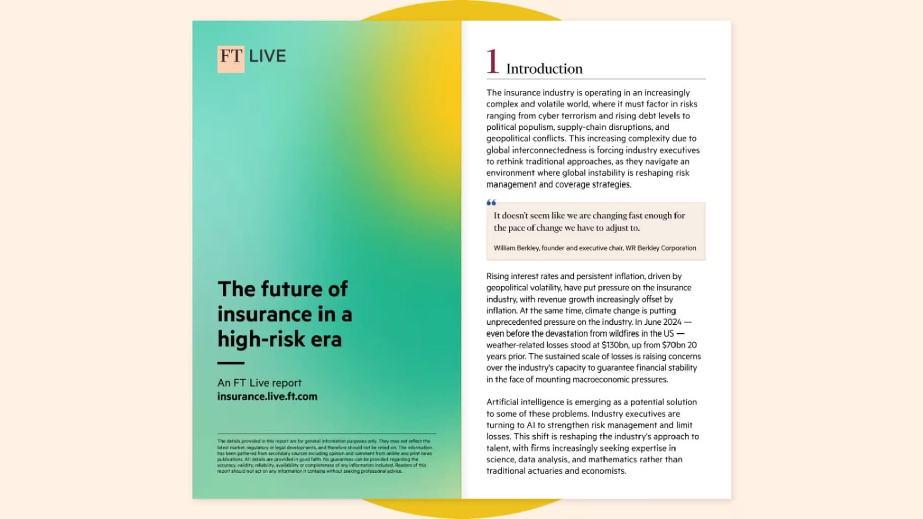 The insurance industry is under pressure. Geopolitical uncertainty, climate risk and technological disruption are making traditional risk models unreliable. Download the FT report for insights on navigating the evolving landscape.